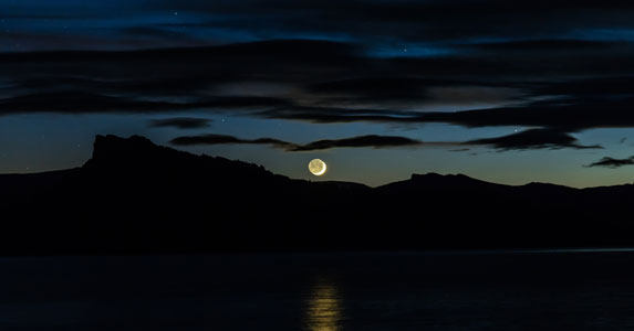 月亮已经升起,照得石桥上如白昼般明亮。